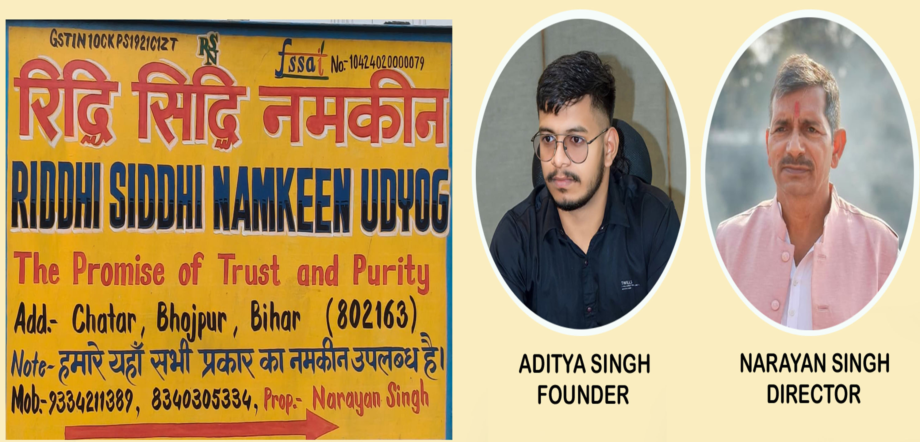 Riddhi Siddhi Namkeen was launched on 22 February 2024 with a special goal, its founder is Aditya Singh, who after graduating from VBU started preparing for UPSC. After not getting success in UPSC, he made a new start-up plan with his father and established Namkeen Industry. Aditya Singh's father Narayan Singh, who is a very old businessman, has done more than 20 businesses and even today he does many different types of businesses.